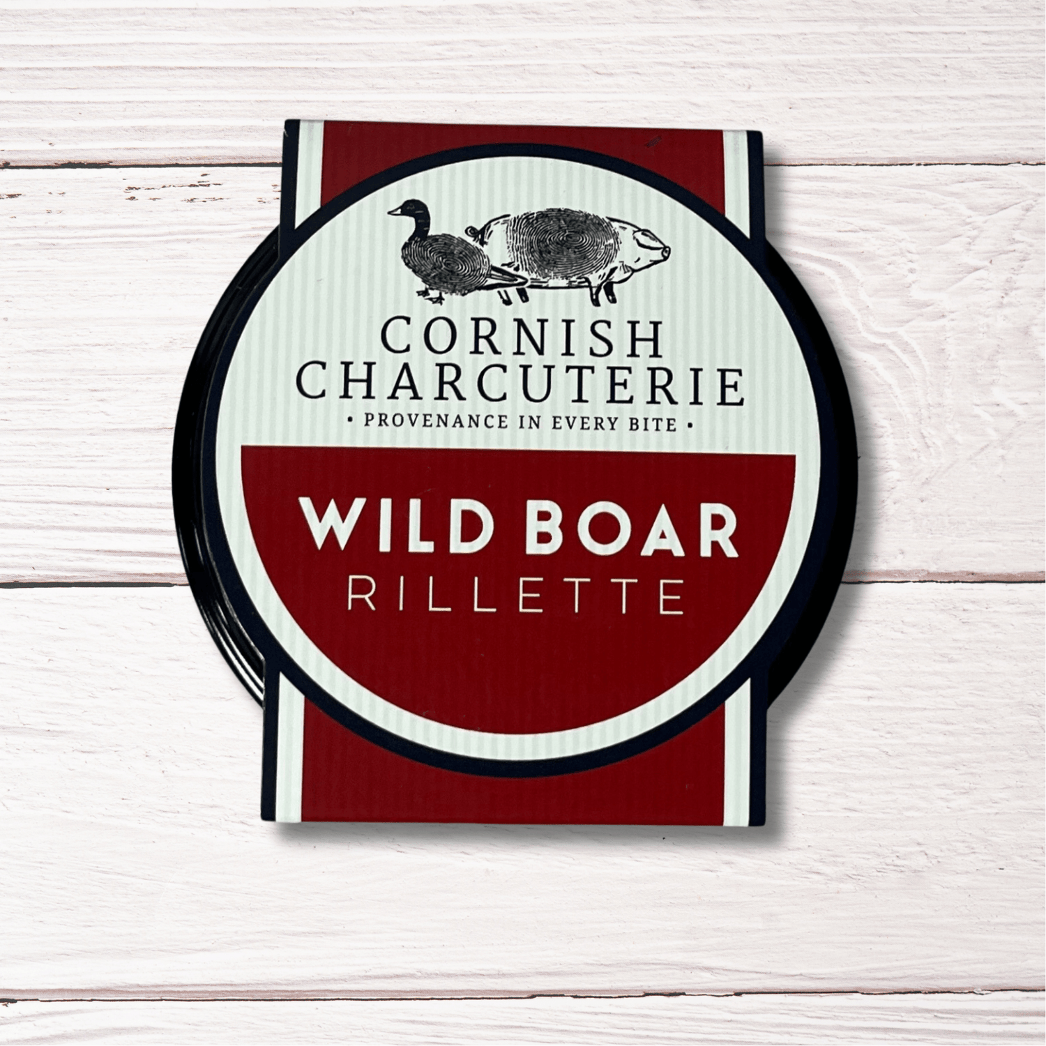 Boar Meat (37.6%), Duck Fat, Pork (18.5%), Apricots (Sulphites), Capers (Capers [62%], water, salt, wine vinegar, acidity regulator: E260, firming agent: E509, antioxidant: E300), Dijon Mustard (water, mustard seeds (30%), Spirit Vinegar, Sea Salt, Preservative: E222 (Sulphites), Wholegrain Mustard (Mustard Seed [20%], Mustard Flour [20%], White Wine Vinegar (Sulphites)), Pistachio Nuts, Cider Vinegar (Sulphites), Salt, Black Pepper.